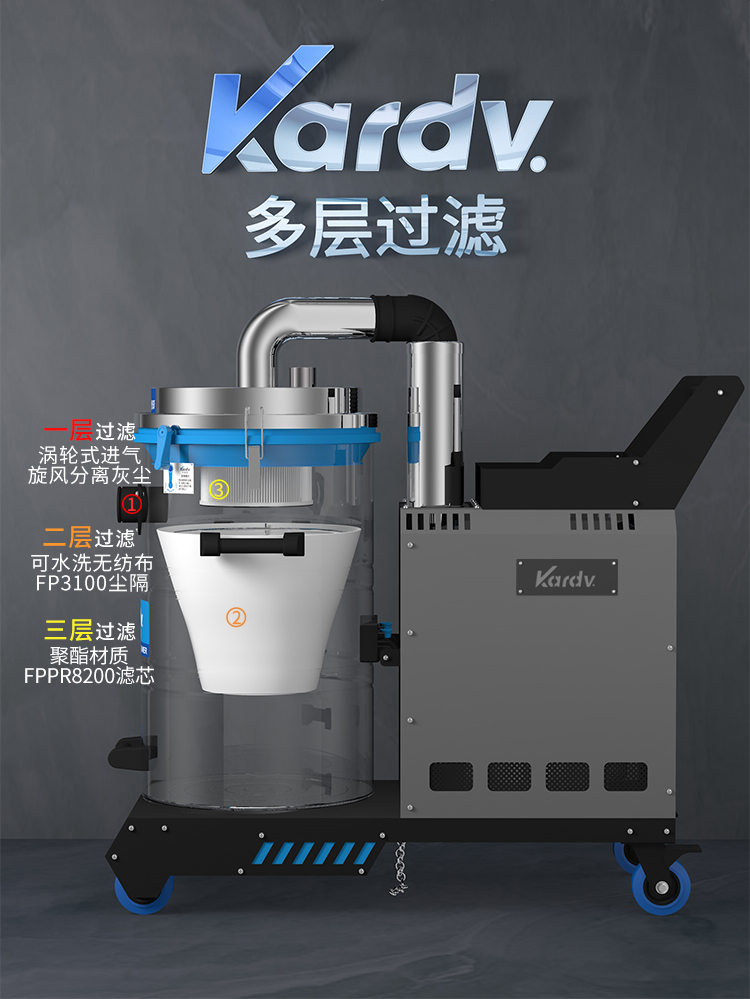 SK-610是一款自主研發的工業吸塵器。采用工業設計風格,做工好,美觀大氣,黑灰色調搭配彰顯本機的工業風格。電控系統采用簡單易操作的按鍵式控制系統,有防缺相,漏電,過載的保護。動力源采用凱德威FY2.2定制主機,主機葉片以及外殼為合金材料壓鑄成型,再經過整體拋光噴涂,相對控制了整機的熱脹冷縮,風量穩定,并選用了質量穩定的軸承。