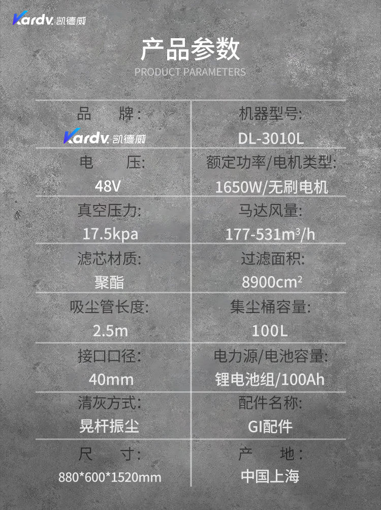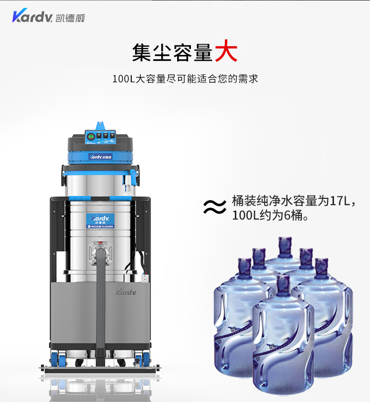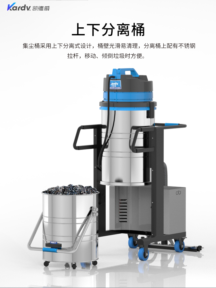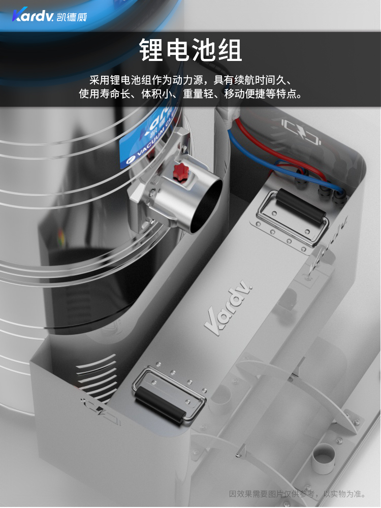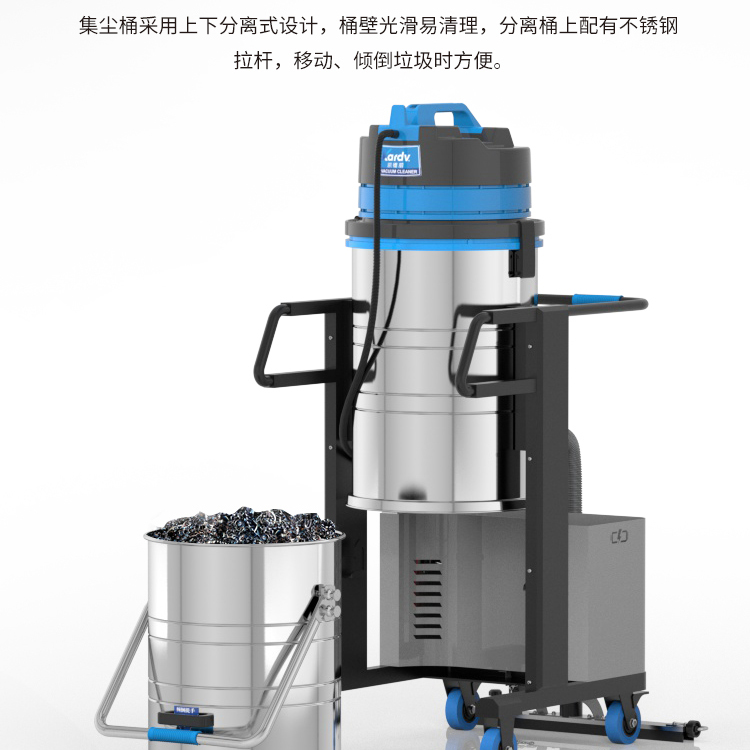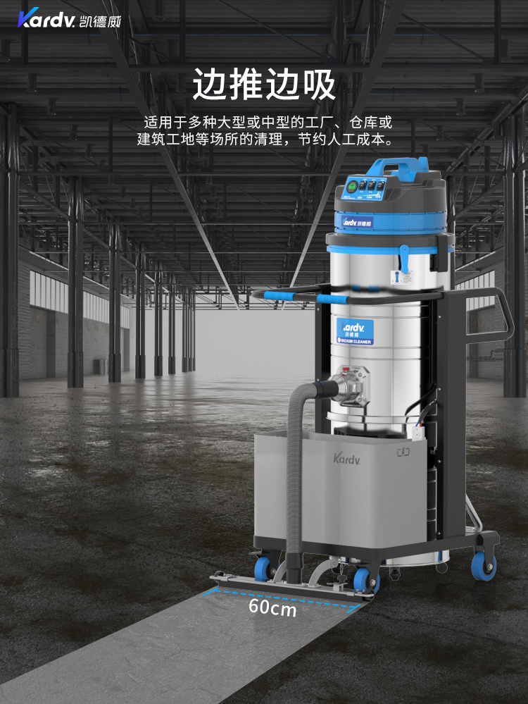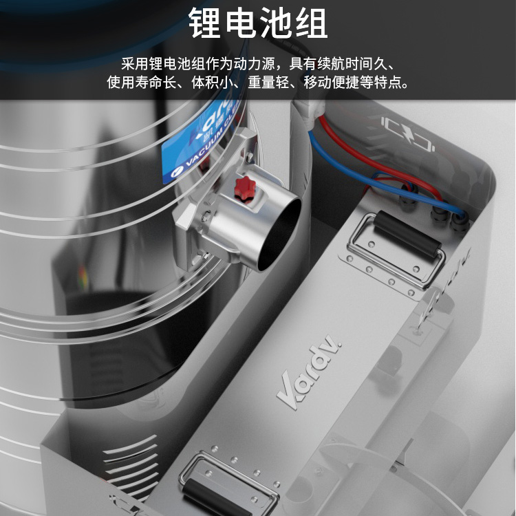 DL-3010L凱德威鋰電池吸塵器是我司的一款充電式工業(yè)吸塵器,摒棄了常規(guī)拖線式吸塵器使用范圍的局限性。此款吸塵器利用鋰電池組做為電力源,不需外接電源,操作簡單方便。100L不銹鋼集塵桶采用上下分離式設(shè)計,桶壁光滑易清理,分離桶上配有不銹鋼拉桿,移動、傾倒垃圾時方便,移動便捷,續(xù)航時間久,隨充隨用,簡單方便。機器除常規(guī)手持式吸塵外,裝置有60cm寬可推吸扒頭,可以邊推邊吸,用于大面積地面除塵。
