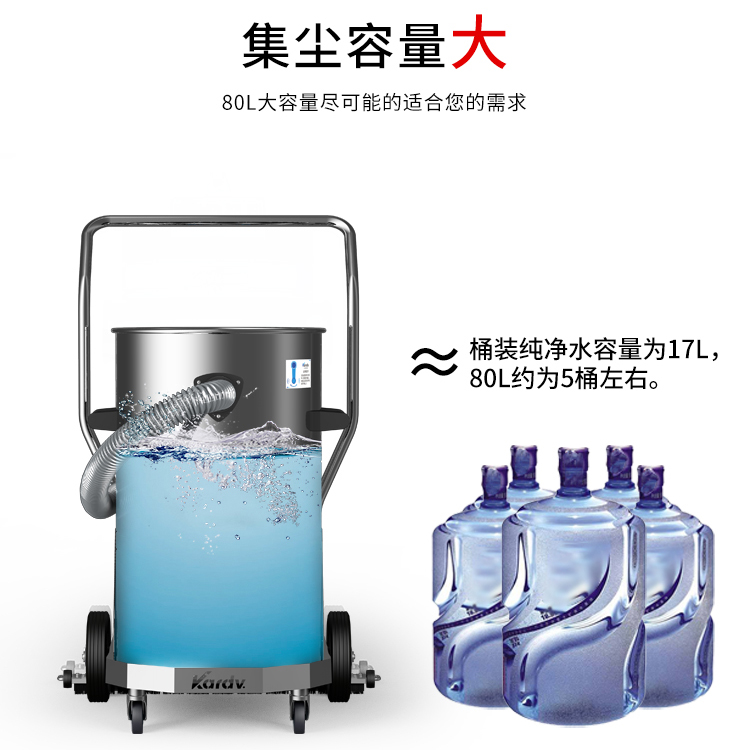 DL-3078P是一款工商業(yè)吸塵器,有3顆馬達(dá),可單獨(dú)或聯(lián)合開(kāi)啟;集塵桶為80L,為不銹鋼材質(zhì),配有不銹鋼車(chē)架,在移動(dòng)時(shí)輕巧方便;配有手動(dòng)晃動(dòng)振塵,在使用的過(guò)程中,左右晃動(dòng)振塵手柄就可以起到清理過(guò)濾器的作用;配有60cm寬的推吸扒頭,可以邊推邊吸。可以用在工廠(chǎng)、倉(cāng)庫(kù)等場(chǎng)所清理灰塵等,在商業(yè)環(huán)境中也可以使用。