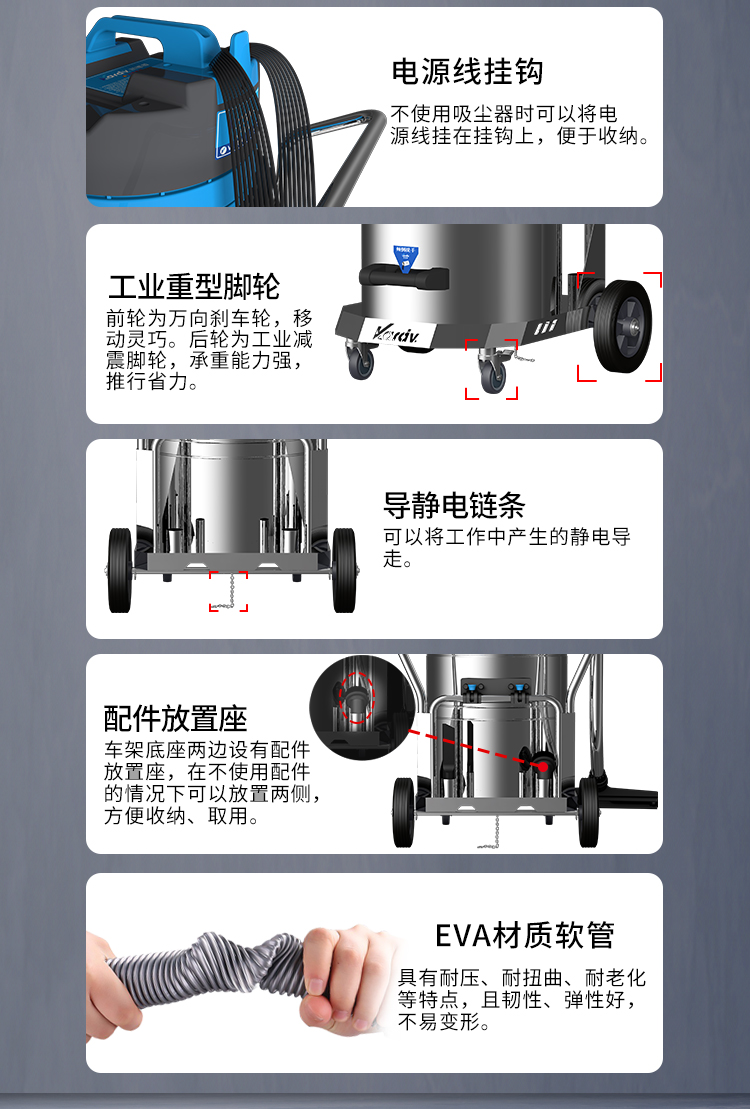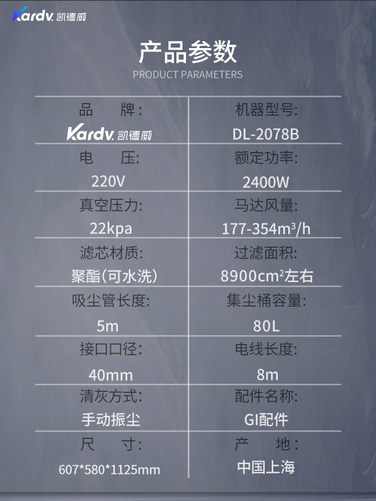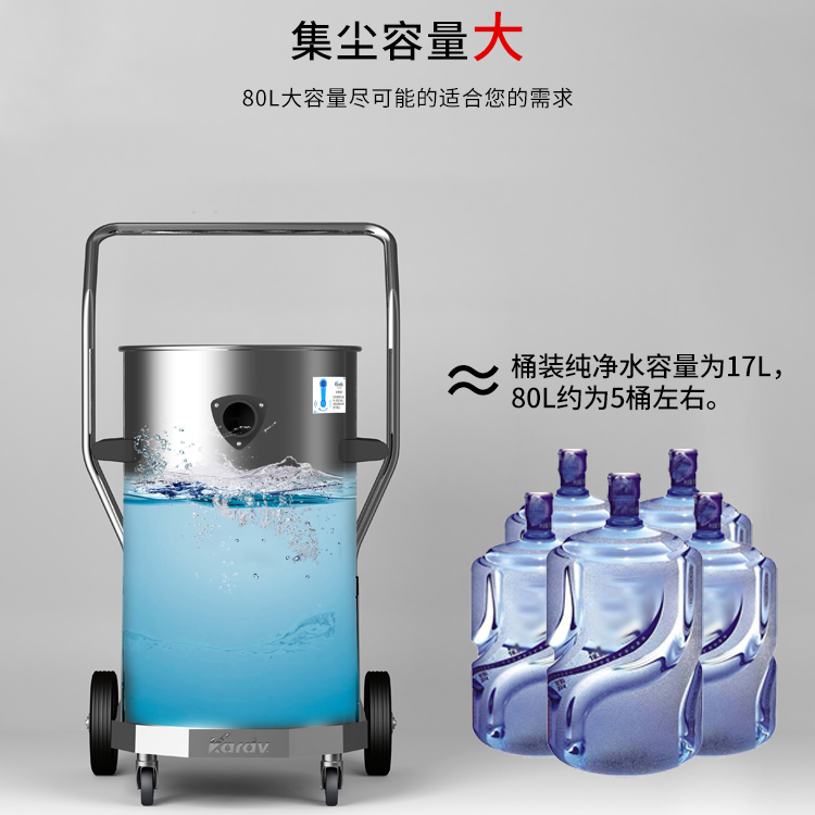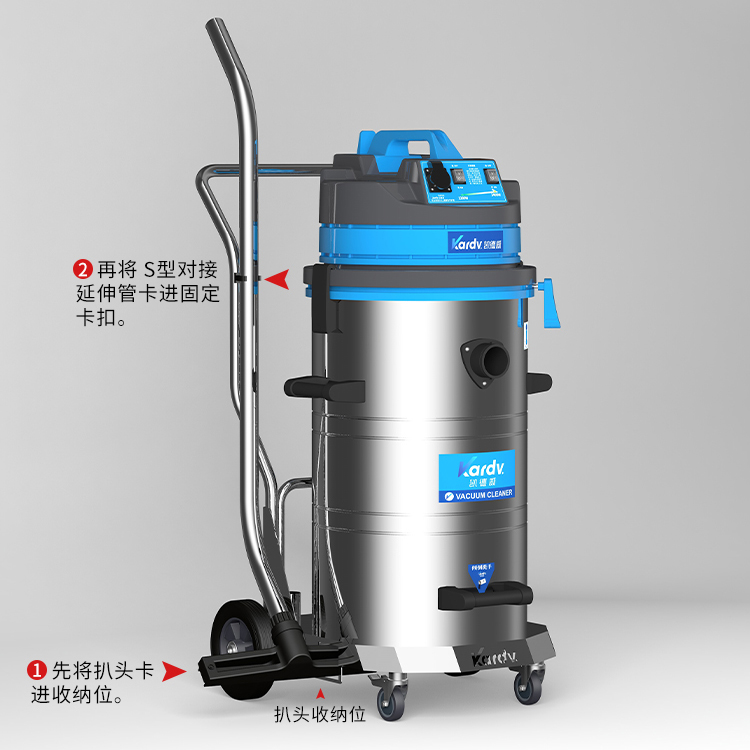 DL-2078B是一款工商業(yè)吸塵器,有2顆馬達,可單獨或聯(lián)合開啟;集塵桶為80L,為不銹鋼材質(zhì),配有不銹鋼車架,在移動時輕巧方便;配有手動晃動振塵,在使用的過程中,左右晃動振塵手柄就可以起到清理過濾器的作用。新款不銹鋼車架,美觀結(jié)實,具有收納配件功能,可以用在工廠、倉庫或建筑工地等場所清理灰塵等,在商業(yè)環(huán)境中也可以使用。