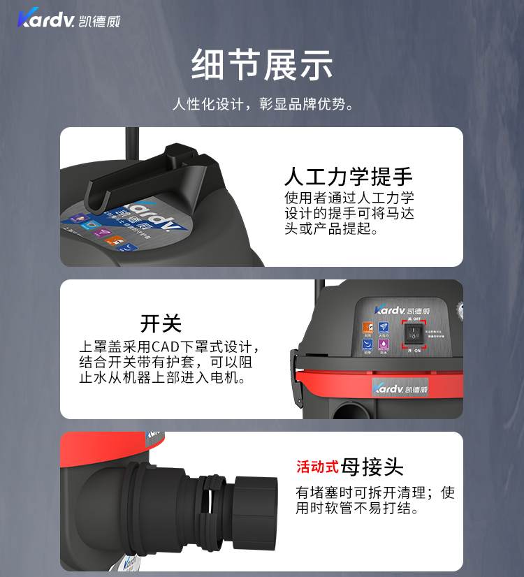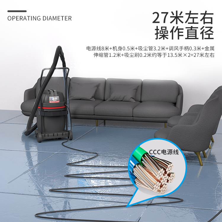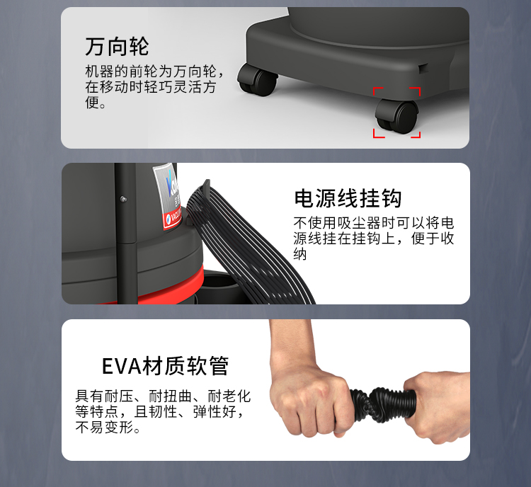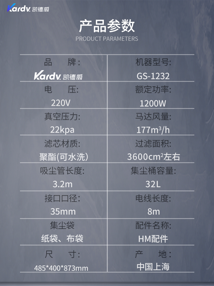 GS-1232是一款工商業型吸塵器,32L集塵桶,配合各種除塵配件使用起來方便。可以用在工業環境中,也可以使用在普通的商業、企業環境。