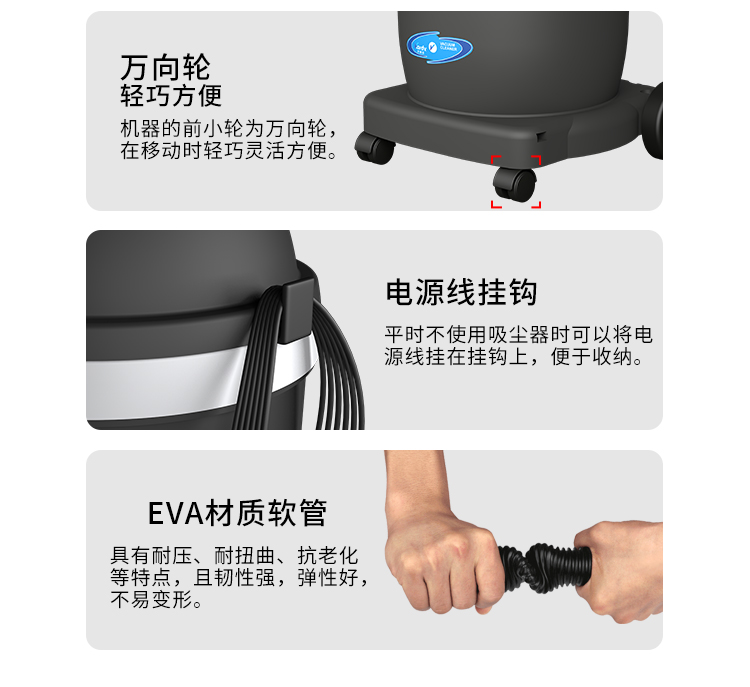 DL-1232W是一款工商業(yè)用吸塵器,集塵桶為32L,配有置物架,可以放置工具和配件,方便使用;配有車架,方便機器移動;散熱上采用上下氣道分離設計,排風上借鑒了汽車排氣管的消音原理,延長了排風的路徑及時間,所以產(chǎn)生的聲音相對要比普通的吸塵器聲音小;多層過濾裝置,使排出來的空氣相對潔凈;可以用在工業(yè)實驗室、無塵車間、凈化車間環(huán)境中,也可以使用在普通的商業(yè)、企業(yè)的辦公環(huán)境。