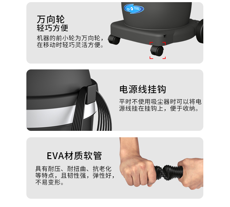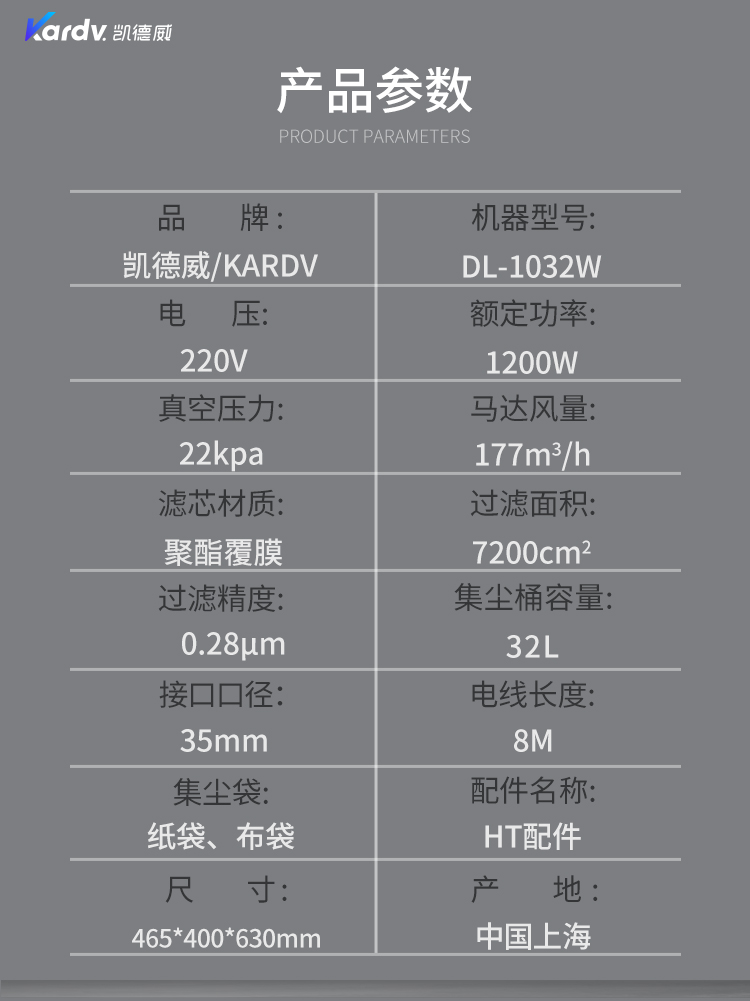 DL-1032W是一款工商業用吸塵器,集塵桶為32L,配有置物架,可以放置工具和配件,方便使用;散熱上采用上下氣道分離設計,排風上借鑒了汽車排氣管的消音原理,延長了排風的路徑及時間,所以產生的聲音相對要比普通的吸塵器聲音小;多層過濾裝置,使排出來的空氣相對潔凈;可以用在工業實驗室、無塵車間、凈化車間環境中,也可以使用在普通的商業、企業的辦公環境。