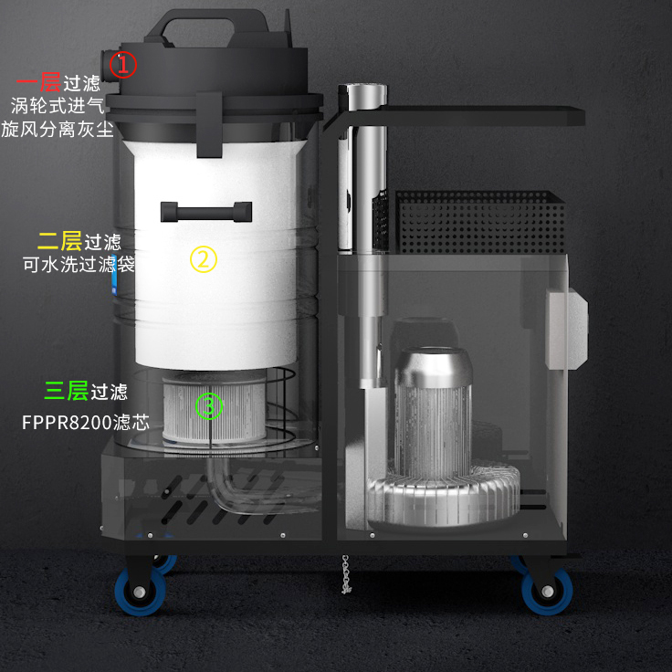 DL-4080X由我司設計,區別常規吸塵器的進氣方式,采用下進氣原理,在吸細小粉塵、紡織廠棉絮、棉絲等容易堵塞過濾器的垃圾時,使大部分垃圾直接進入布袋過濾,少量物質再經過濾器二次過濾,這樣解決了過濾器易堵塞的問題。適用于工廠車間、打磨行業細粉塵的清理;紡織行業,造紙行業等生產過程中產生的棉絮、紙屑等較輕且有吸附性物質的清理。具體請咨詢銷售人員。
